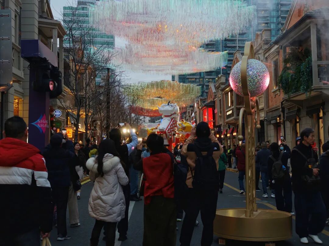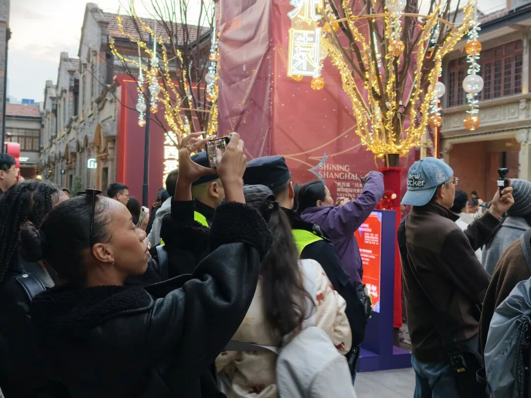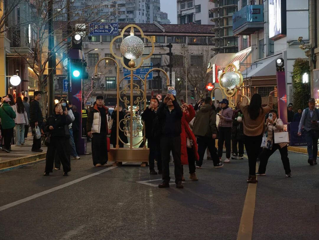 “蛮华丽的,还蛮有年味的!”上海市民吴小姐和朋友打卡完茂名北路的三个点位,“遇到这些装置,肯定会想在这里待久一点,多感受一会儿的。”